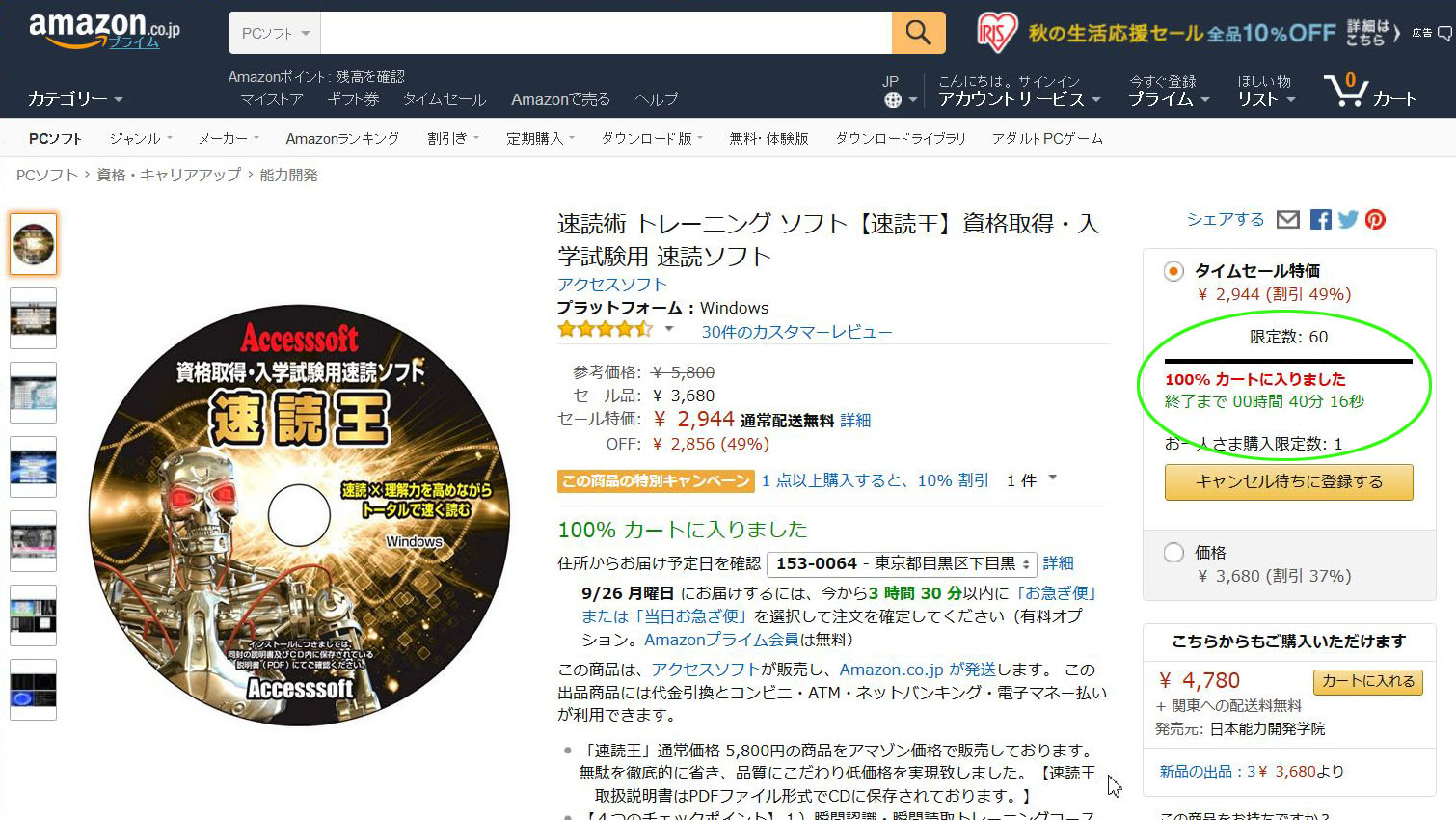 おまけにタイムセール中で、お得やん!